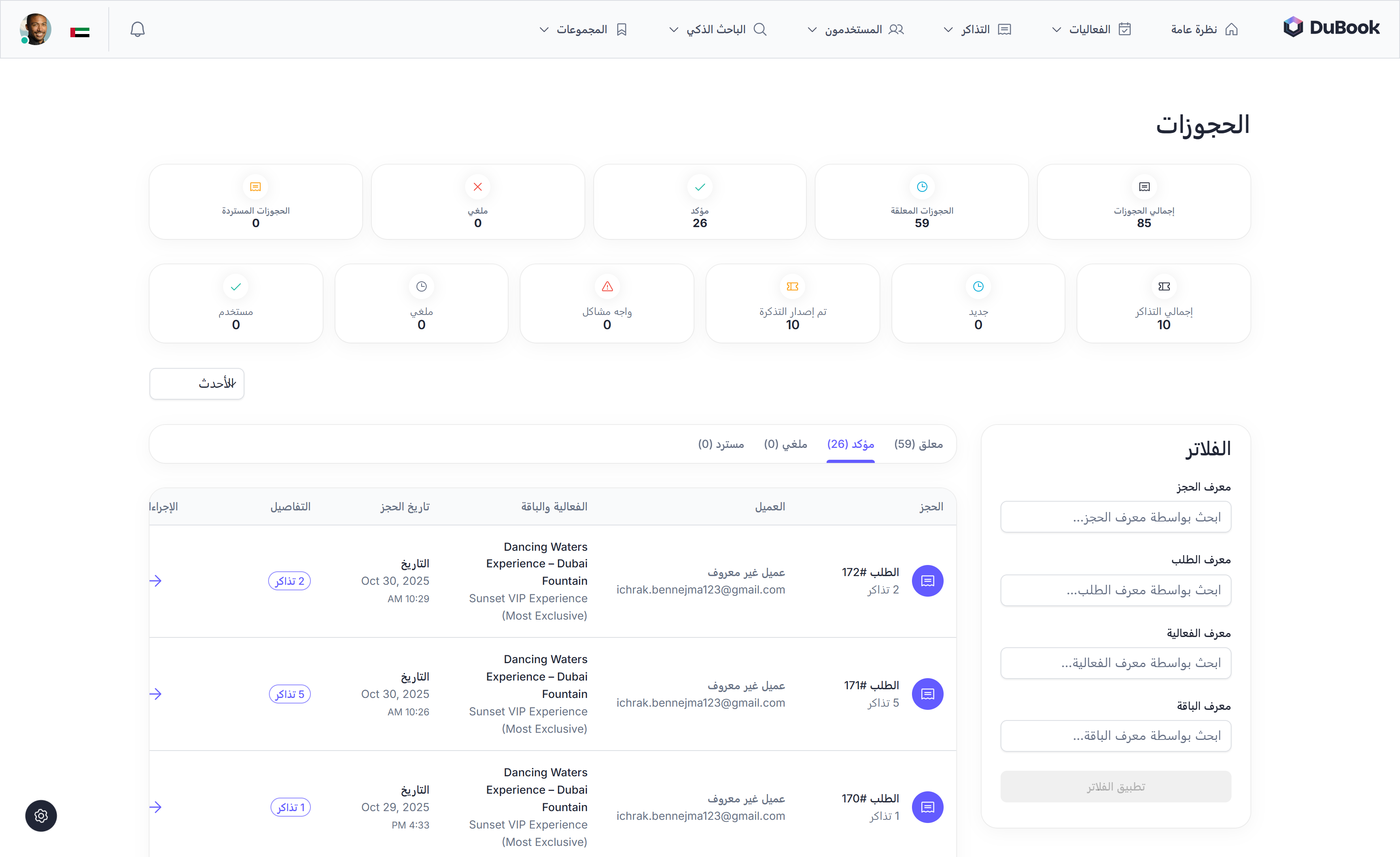 Users discover events based on their current location. Geolocation APIs return nearby events with real-time availability. Smart filters sort by category, date, price, and popularity. Interactive maps display event locations across Dubai's key districts. The interface updates instantly as users move through the city.